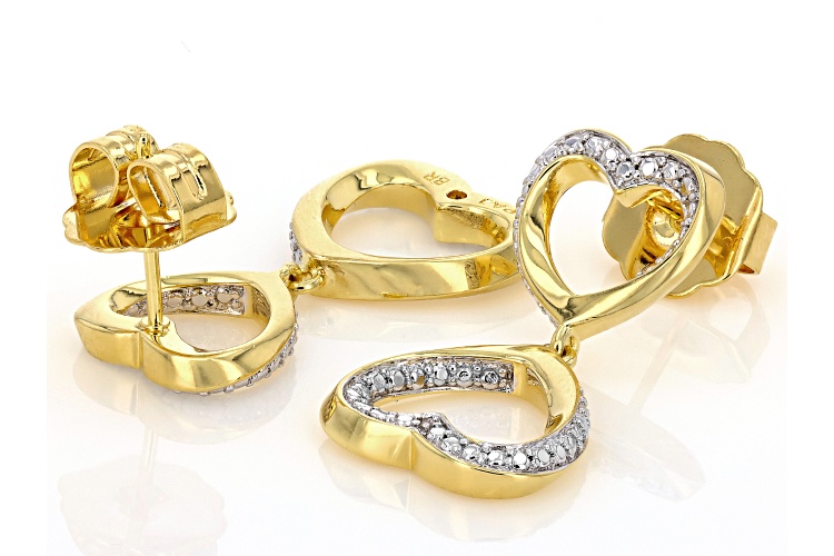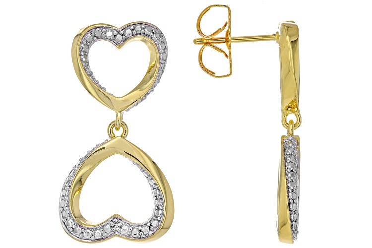 • Emulous™ Round White Diamond Accent 14k Yellow Gold Over Brass Dangle Heart Earrings