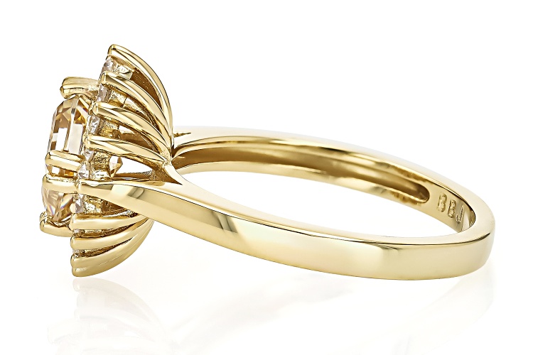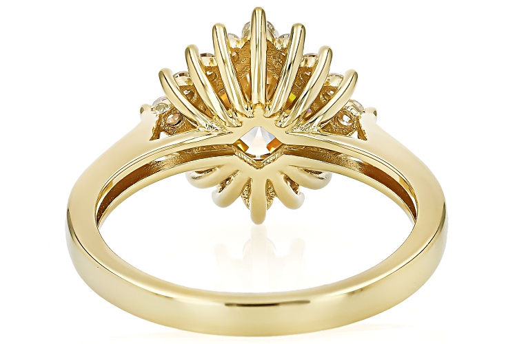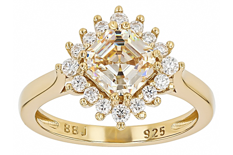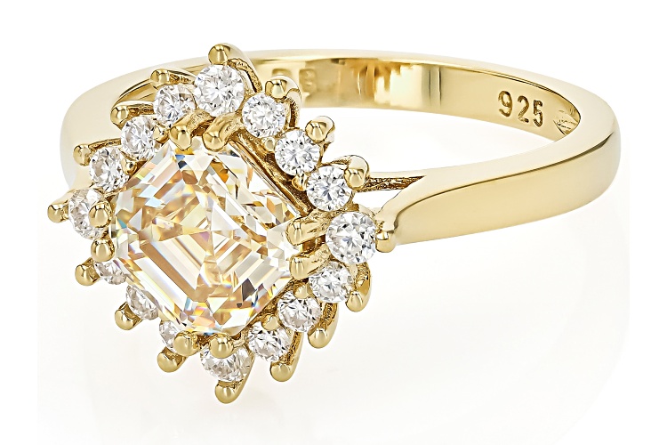 • 2.41ct Asscher Cut Strontium Titanate & 0.23ctw Moissanite 18k Yellow Gold Over Sterling Silver Ring - Size 9