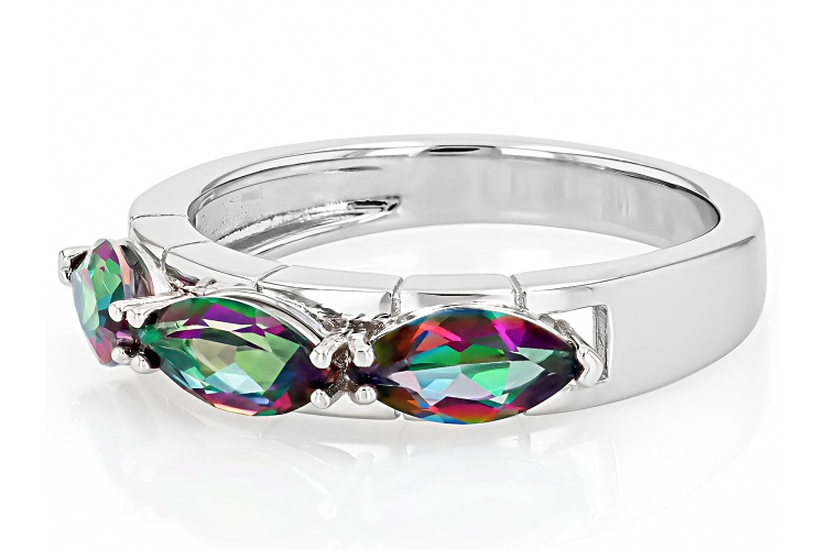 • 1.62ctw Marquise Mystic Fire® Green Topaz Rhodium Over Sterling Silver Ring - Size 9