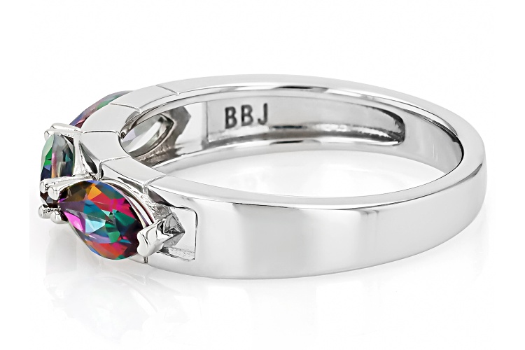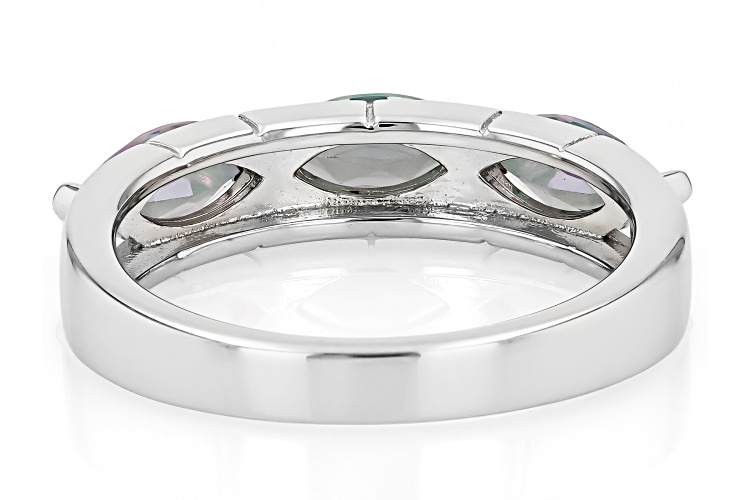 1.62ctw Marquise Mystic Fire® Green Topaz Rhodium Over Sterling Silver Ring - Size 9