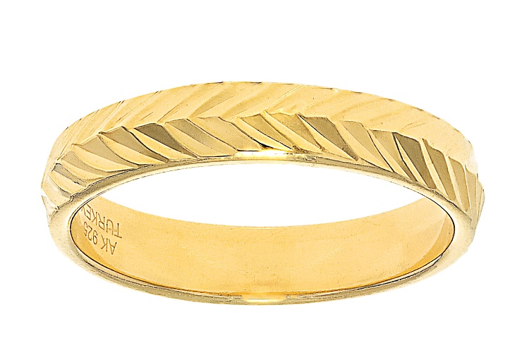 • 18k Yellow Gold Over Sterling Silver Chevron Diamond Cut Band Ring - Size 7