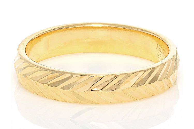 18k Yellow Gold Over Sterling Silver Chevron Diamond Cut Band Ring - Size 7