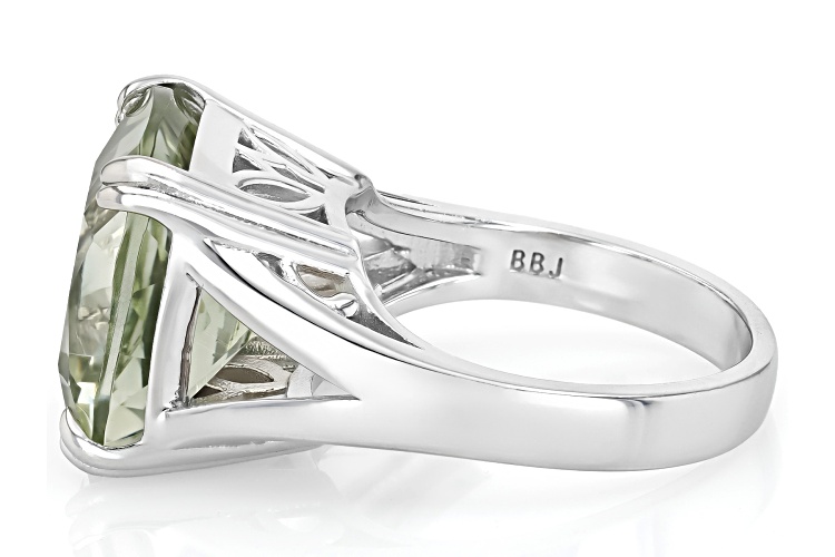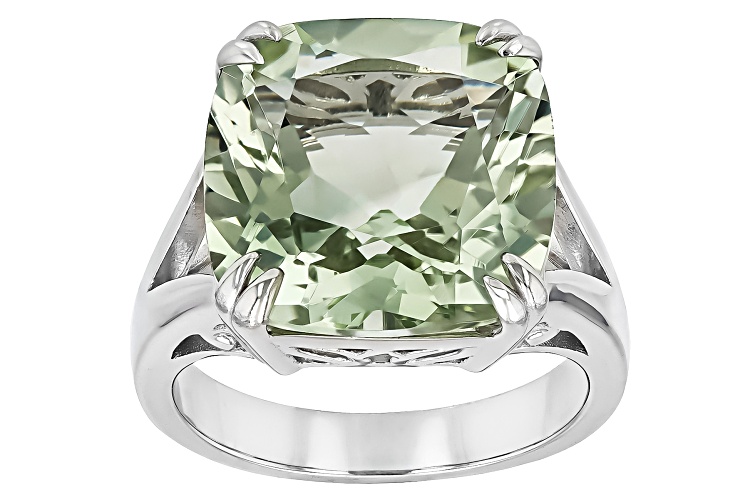 • 11.00ctw Prasiolite Rhodium Over Sterling Silver Solitaire Ring - Size 6