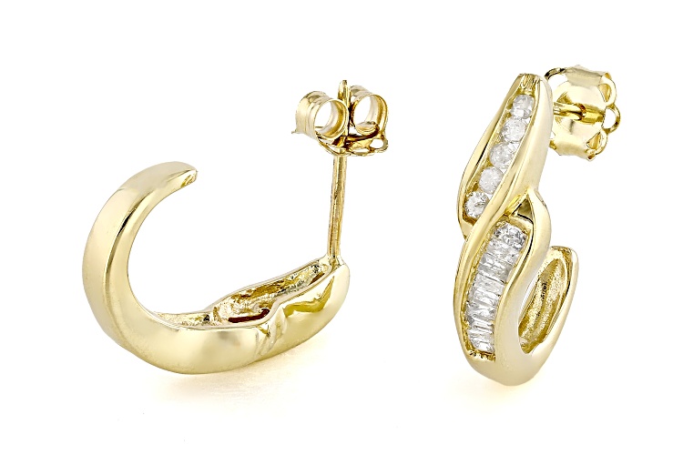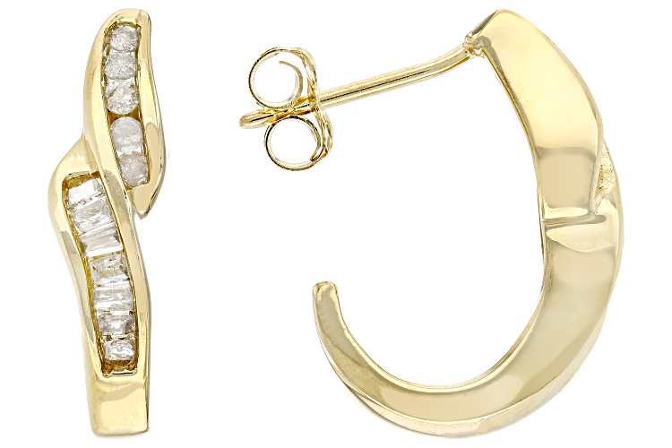 0.20ctw Round And Baguette White Diamond 10k Yellow Gold J-Hoop Earrings