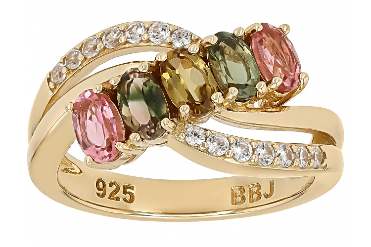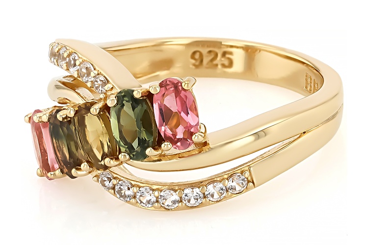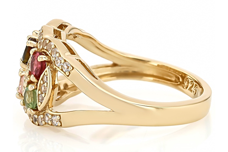 • 0.95ctw Multi Color Tourmaline With 0.24ctw White Zircon 18k Yellow Gold Over Sterling Silver Ring - Size 7