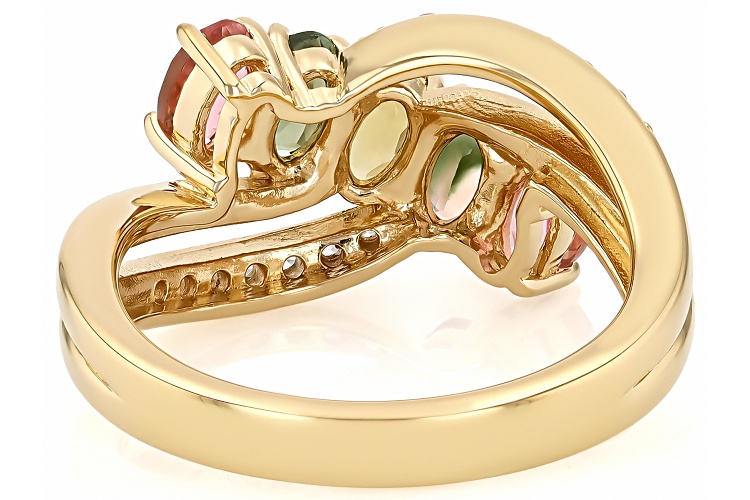 0.95ctw Multi Color Tourmaline With 0.24ctw White Zircon 18k Yellow Gold Over Sterling Silver Ring - Size 7