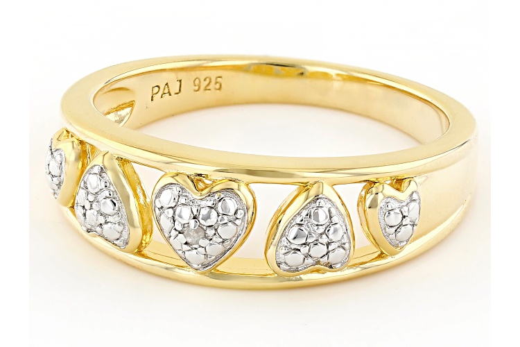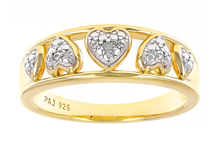 • Engild™ Round White Diamond Accent 14k Yellow Gold Over Sterling Silver Heart Band Ring - Size 5