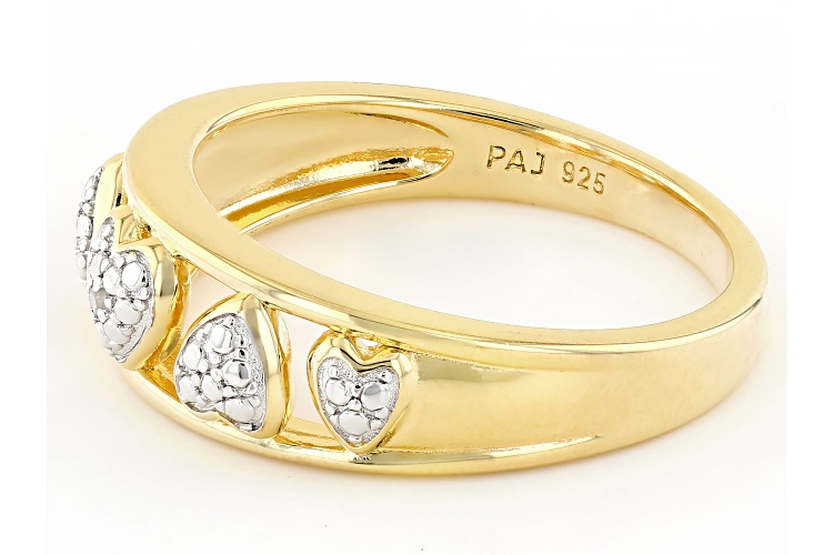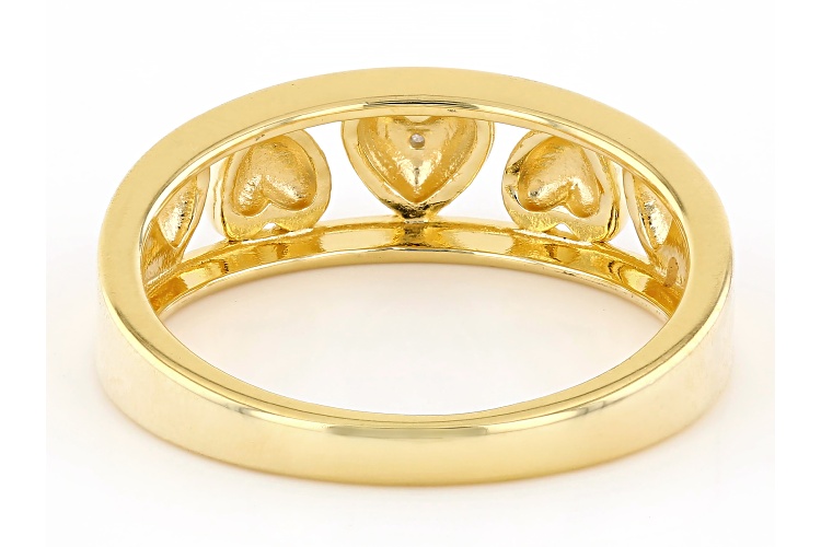 Engild™ round white diamond accent, 14k yellow gold over sterling silver heart band ring. Measures approximately 11/16"L x 1/4"W and is not sizeable. White rhodium enhanced prongs.