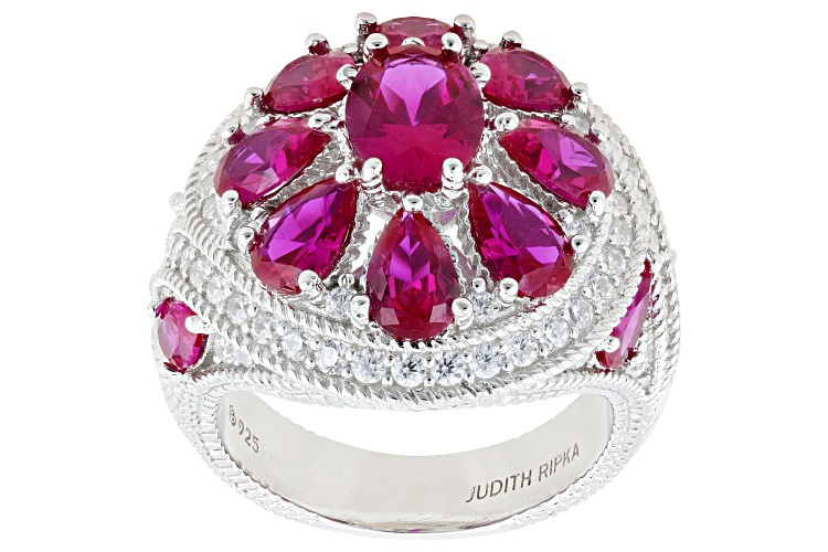 • Judith Ripka 12.76ctw Lab Ruby With 1.22ctw White Bella Luce® Rhodium Over Silver Celebration Ring - Size 8