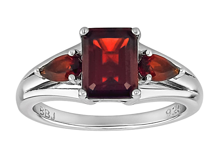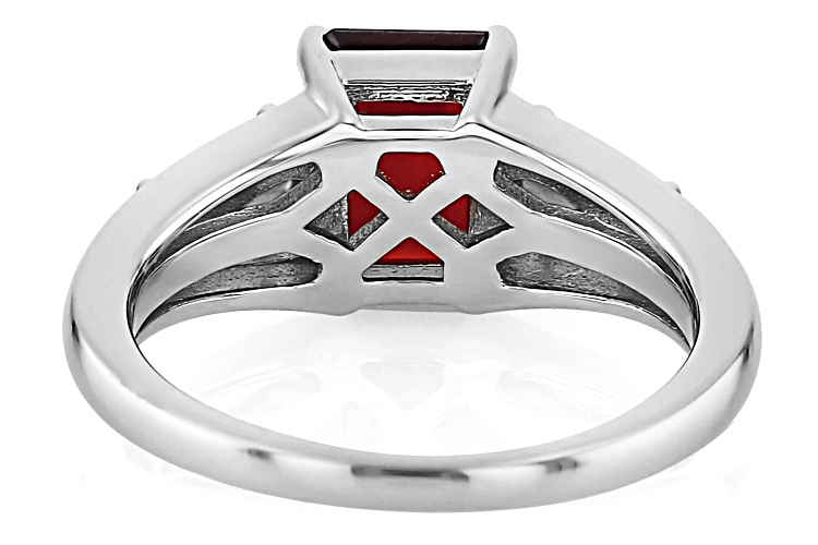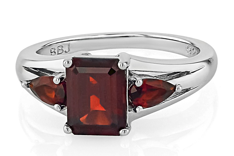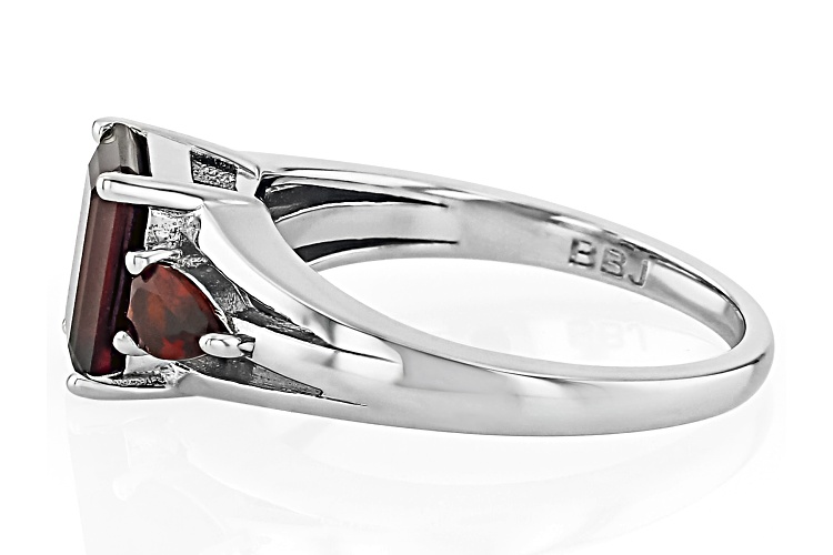 • 2.03ct Rectangular Octagonal And 0.48ctw Pear Vermehlo Garnet™ Rhodium Over Silver 3-Stone Ring - Size 9