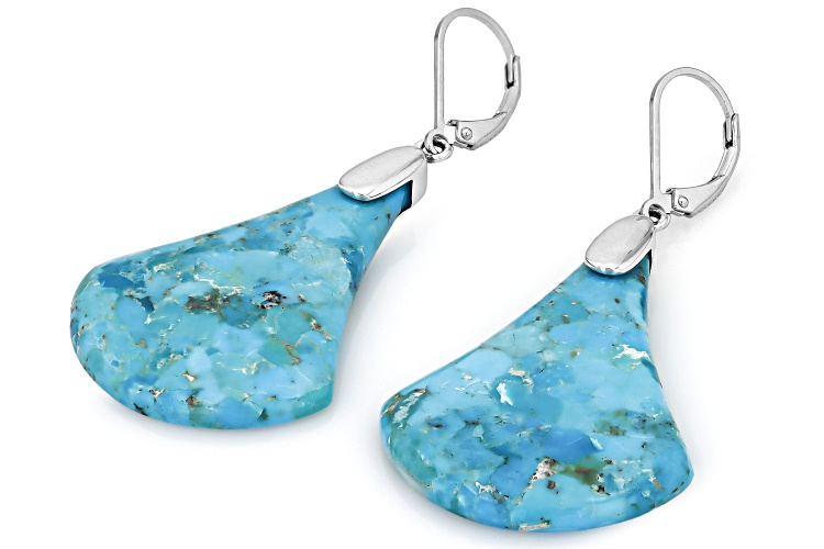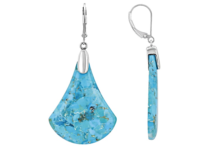 34x26 Freeform Composite Turquoise Sterling Silver Dangle Earrings. Measures Approximately. This product contains composite turquoise. This means separate pieces of turquoise were bound together.