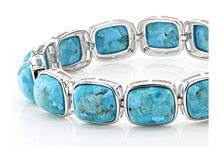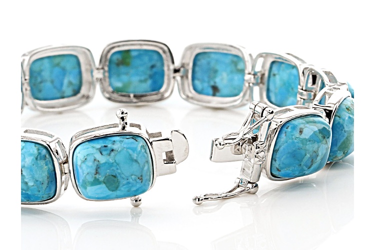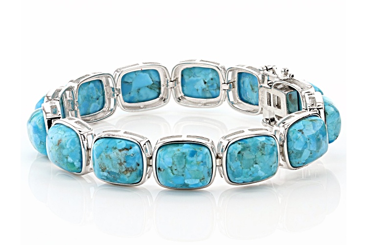12x10mm Rectangular Cushion Cabochon Turquoise Rhodium Over Sterling Silver Bracelet - Size 8