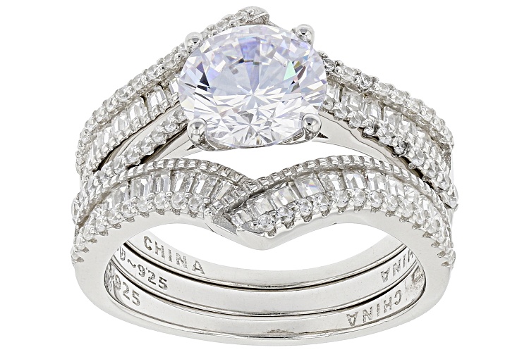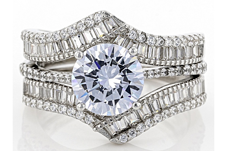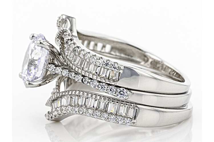 • Bella Luce ® 4.90ctw White Diamond Simulant Rhodium Over Sterling Silver Ring With Bands - Size 8