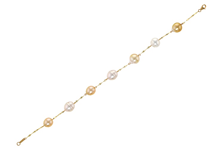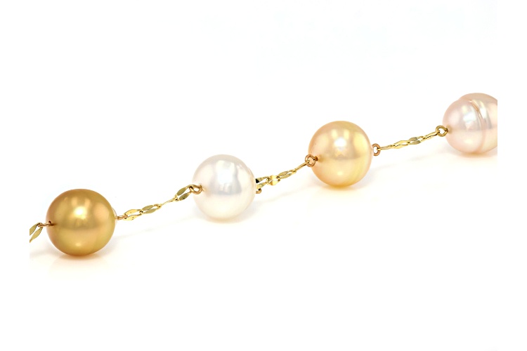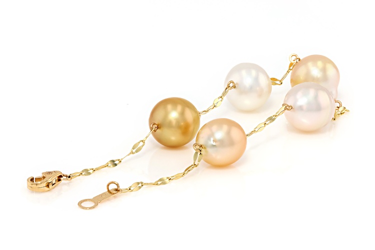 • 8.5-10mm Multi-Color Cultured South Sea Pearl 14k Yellow Gold Bracelet