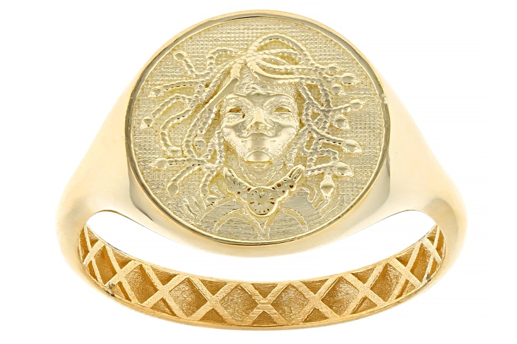 10k Yellow Gold Medusa Signet Ring - Size 7