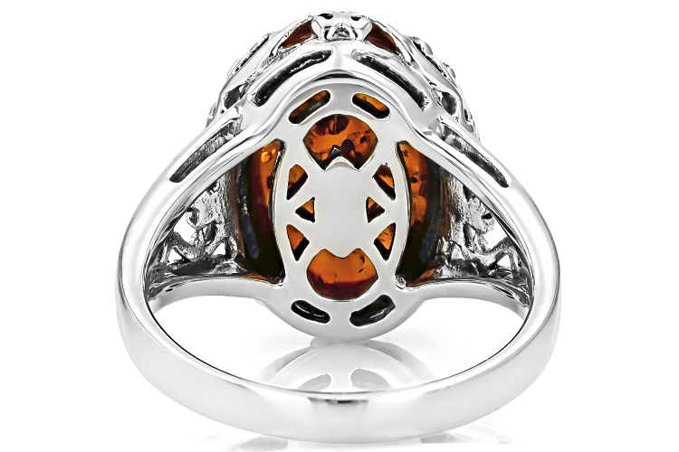 16x12 Oval Cabochon Amber Sterling Silver Solitaire Ring. Measures Approximately 0.69"L x 0.57"W. Not sizeable.