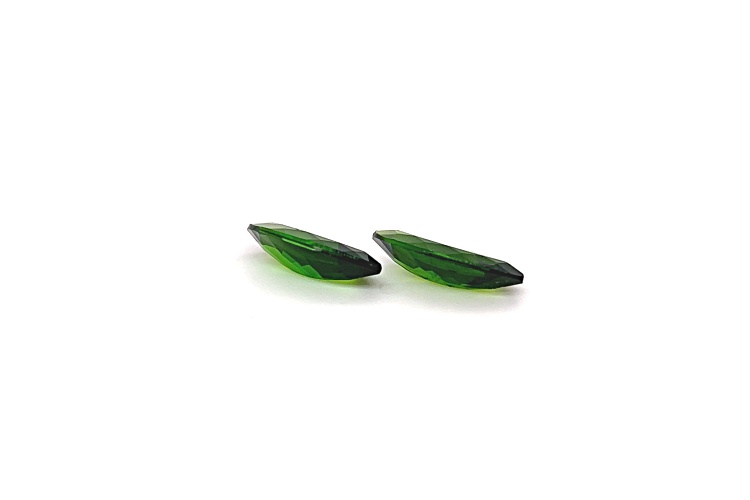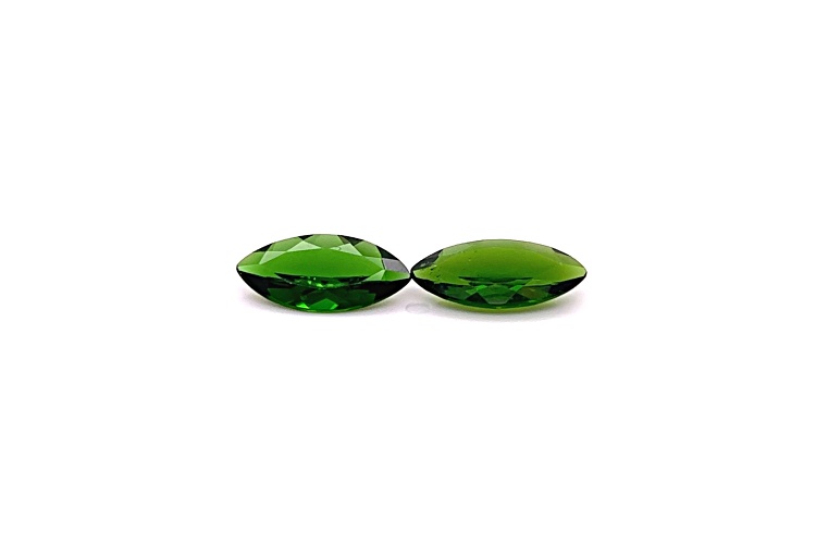 Matched Pair of Chrome Diopside 14x7mm Marquise minimum 4.65ctw. The gemstones were mined in Russia and cut in China.