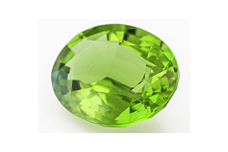 Burmese strong yellowish green peridot 9.87ct 15.97x12.37x6.90mm oval. The gemstone was mined in Myanmar and cut in India.