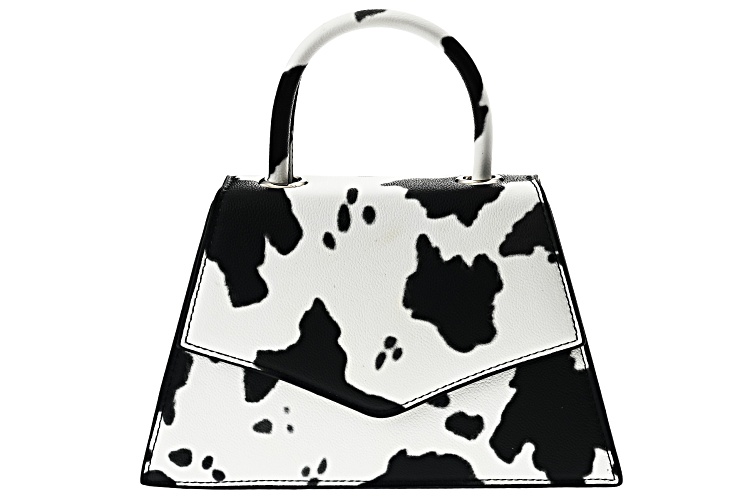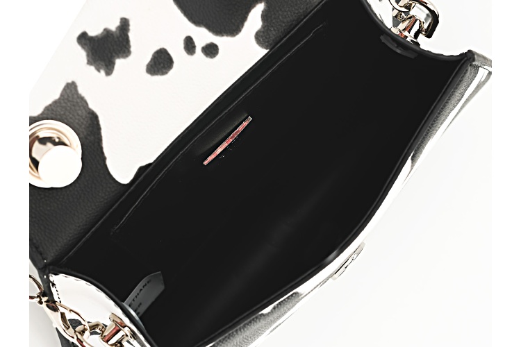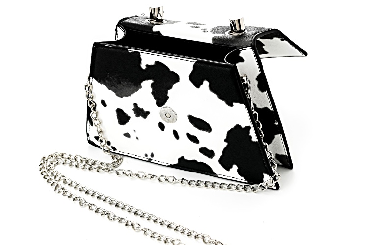 Off Park® Collection, Imitation Leather Silver Tone Cow Print Clutch. Measures Approximately 9.0"L x 8.5"W. Includes removable 48" chain.