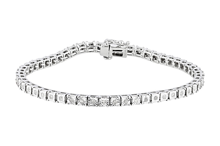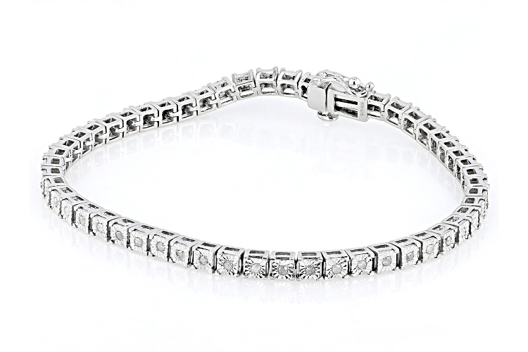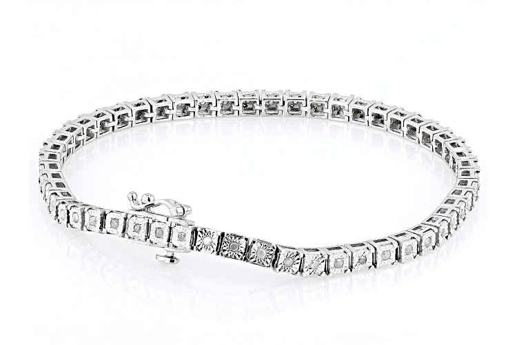 0.55ctw Round White Diamond Rhodium Over Sterling Silver Square Tennis Bracelet - Size 7.5