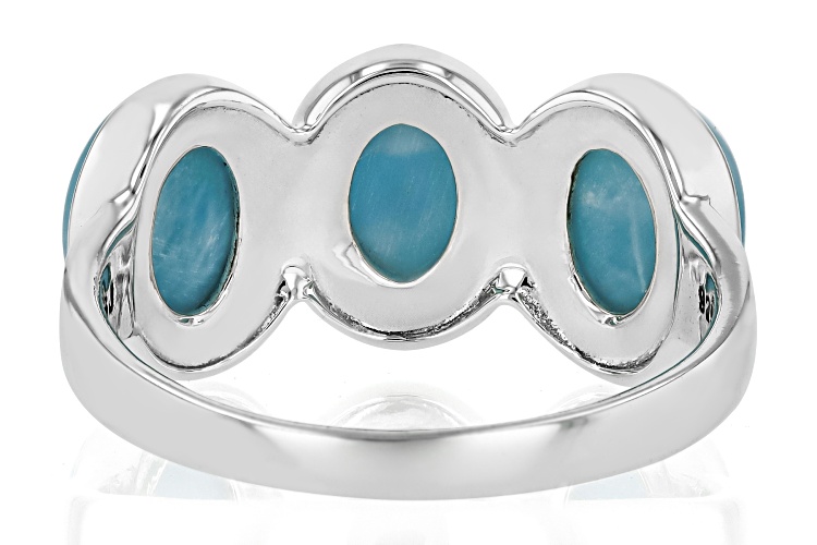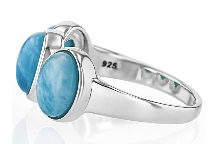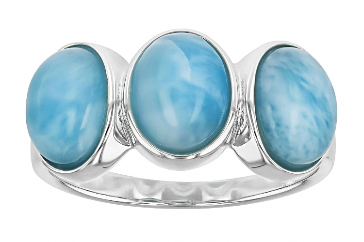 8x6mm Oval Cabochon Larimar Sterling Silver 3-Stone Ring. Measures Approximately 0.40"L x 0.83"W. Not sizeable.