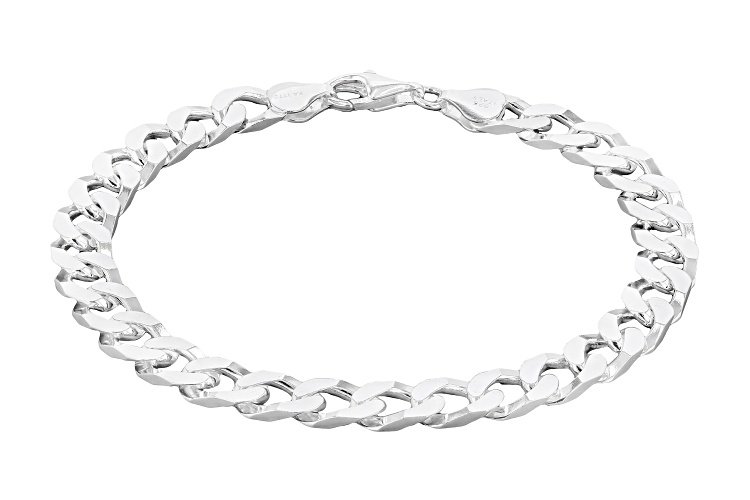 • Sterling Silver 7.3mm Flat Curb Link Bracelet - Size 8.5