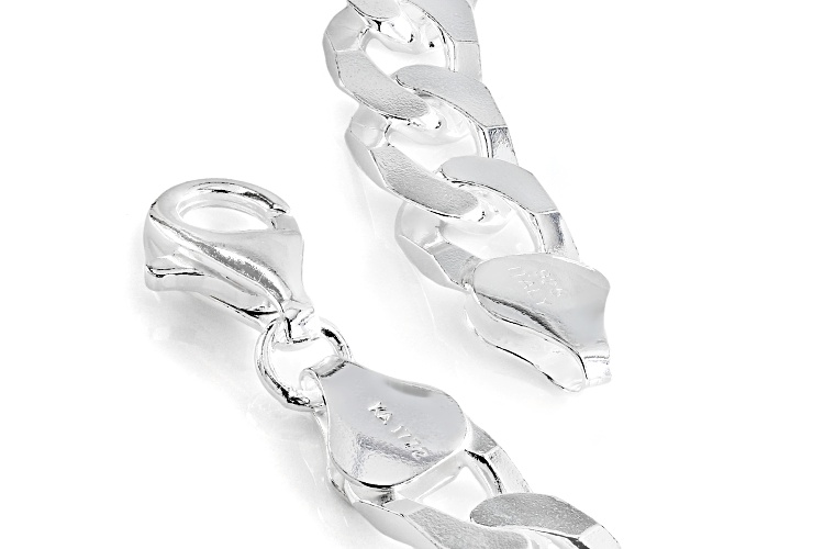 Sterling Silver 7.3mm Flat Curb Link Bracelet. Lobster Claw Clasp Closure.