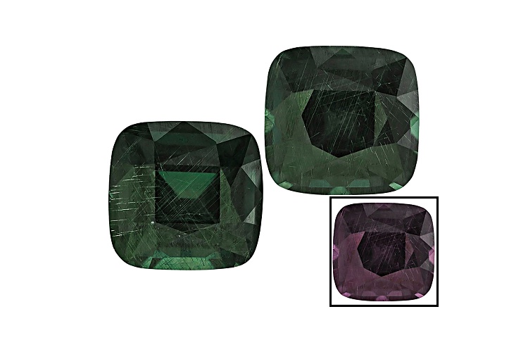 Matched pair of Masasi blue color change garnet min 1.25ctw mm varies square cushion