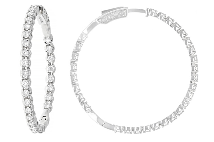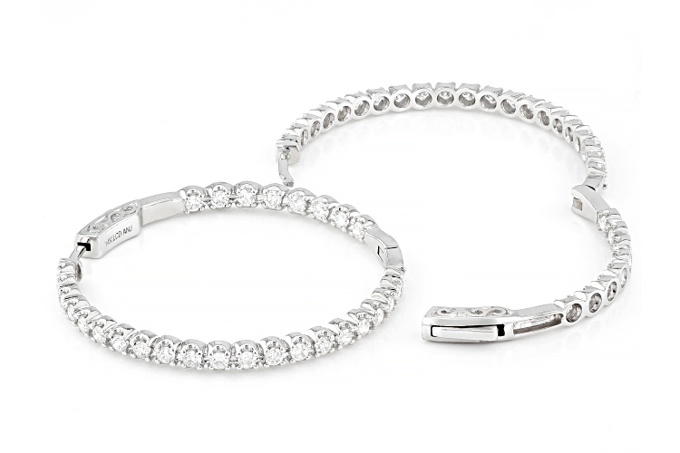 • Prazana® Lab-Grown Diamonds 3.00ctw Round White Diamond 14k White Gold Hoop Earrings, F SI2