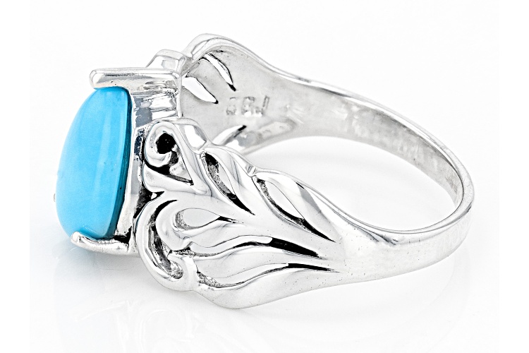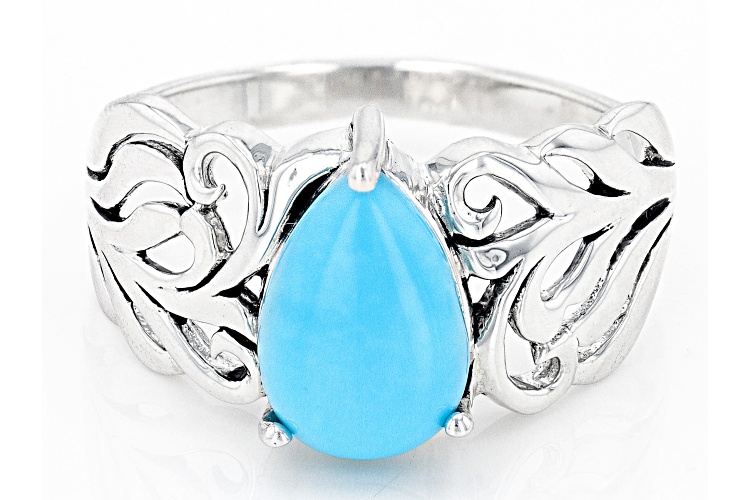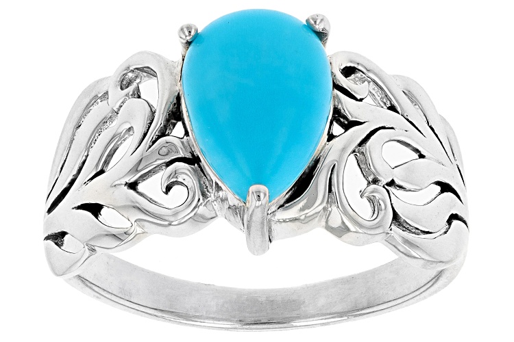 10x7mm Pear Shape Sleeping Beauty Turquoise Sterling Silver Solitaire Ring. Measures Approximately 0.82"L x 0.43"W. Not Sizeable.