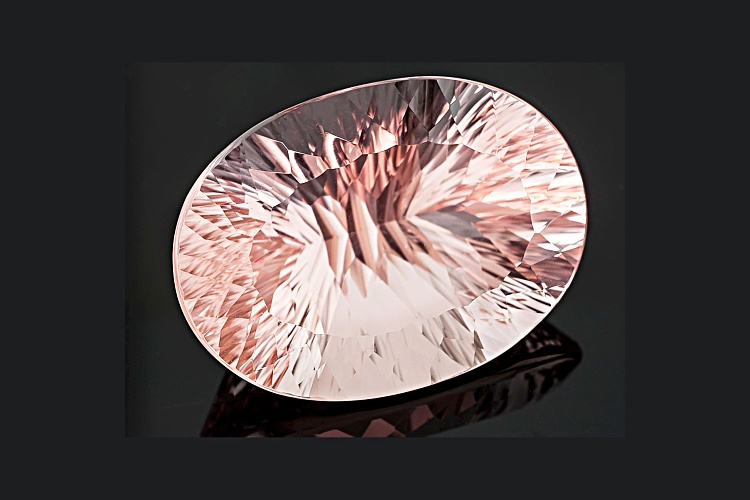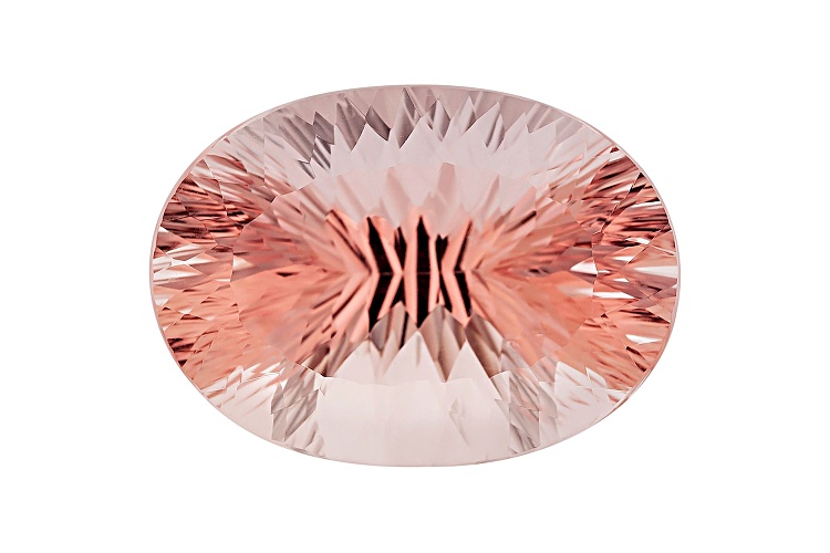 Mozambique Cor-de-rosa™ Morganite 59.40ct 30.06x21.72x16.43mm oval Quantum Cut®. The gemstone was mined in Mozambique and cut in India. The stone comes with a Stone Group Labs Gemstone Identification and Origin Report.
