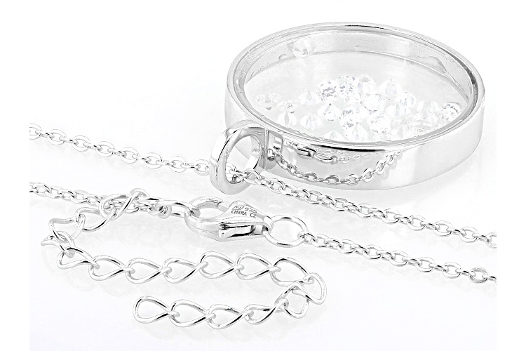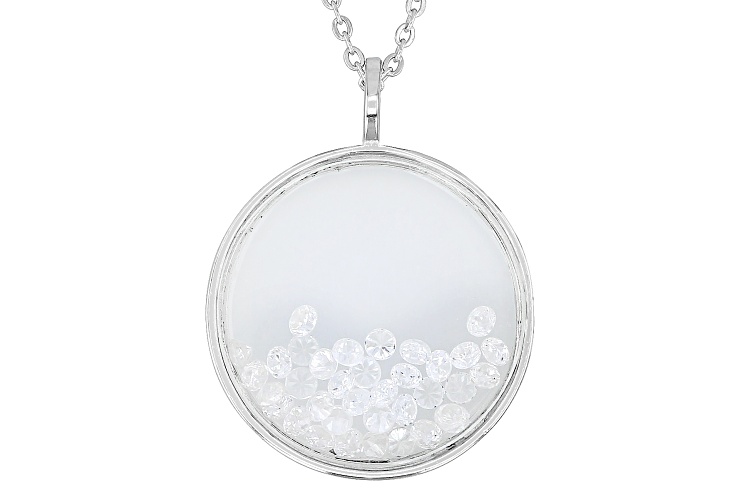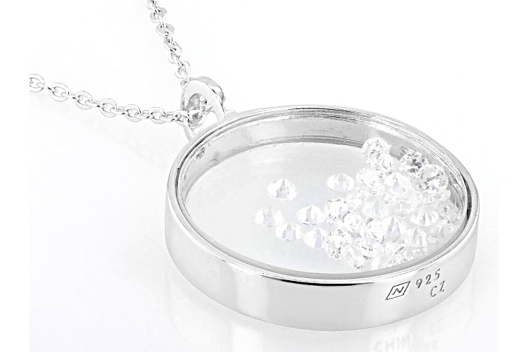 Bella Luce® white diamond simulant 0.81ctw round, rhodium over sterling silver pendant with chain. Pendant measures approximately 1.05" L x 0.82" W. Includes a 18" L x 0.03" W cable chain that has a 2" extender and lobster claw clasp closure. The diamond equivalent weight is 0.49ctw.