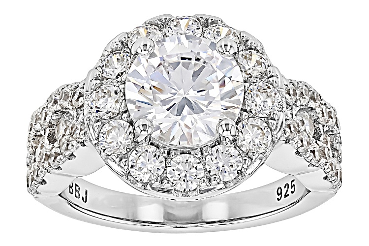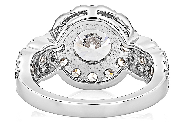 Bella Luce® white diamond simulant 6.04ctw round, rhodium over sterling silver ring. Measures approximately 0.81" L x 0.50" W and is not sizeable. The diamond equivalent weight is 3.66ctw.