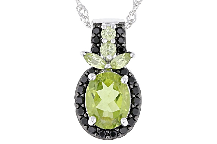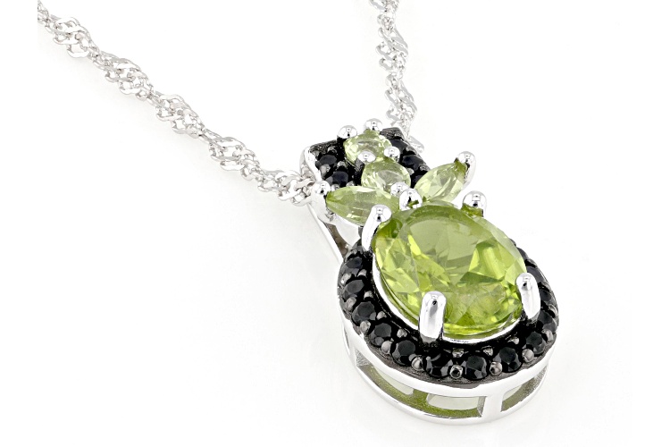 1.91ctw Manchurian Peridot™ with 0.32ctw Black Spinel Rhodium Over Sterling Silver Pendant/Chain