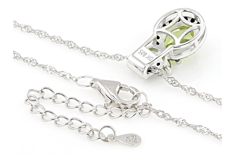 • 1.91ctw Manchurian Peridot™ with 0.32ctw Black Spinel Rhodium Over Sterling Silver Pendant/Chain