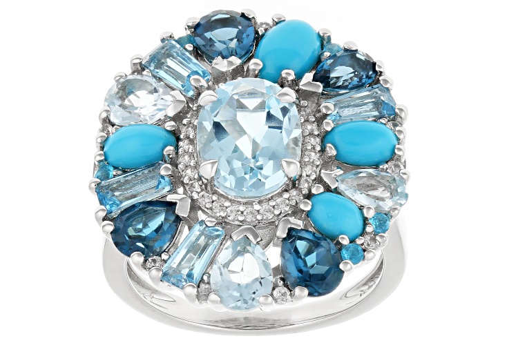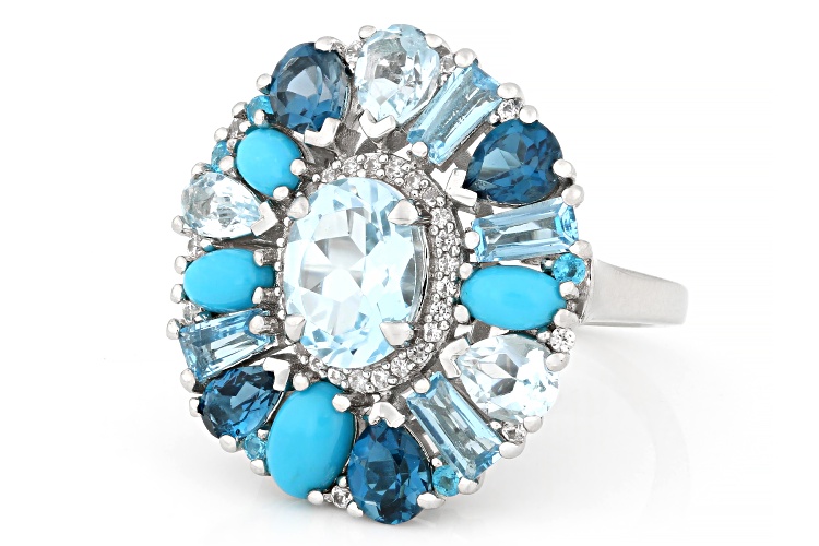 • 5.00ctw Glacier Topaz™ with Multi-Stone Platinum Over Sterling Silver Ring - Size 7