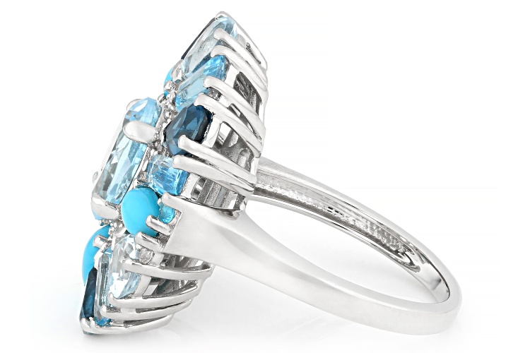 5.00ctw Glacier Topaz™ with Multi-Stone Platinum Over Sterling Silver Ring - Size 7