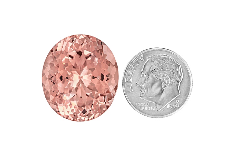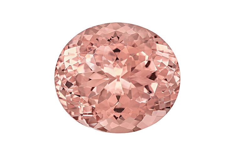 Brazilian medium light Orangish Pink morganite 32.68ct 22.13x19.56x13.54mm oval. The gemstone was mined and cut in Brazil. The gemstone comes with a Stone Group Labs Gemstone Identification Report.