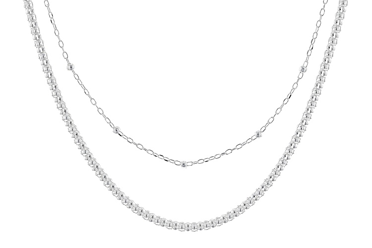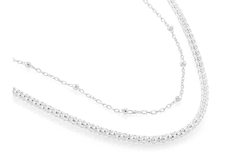 Sterling Silver 2mm Popcorn Chain with Cable and Bead Station Chain Set of 2 - Size 18