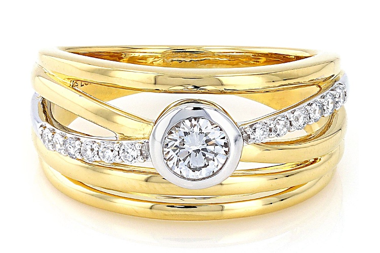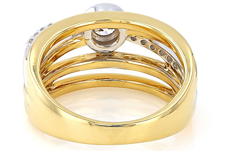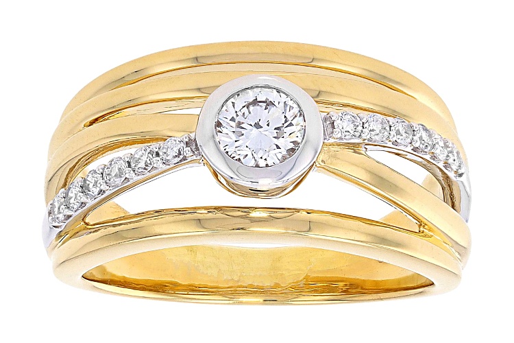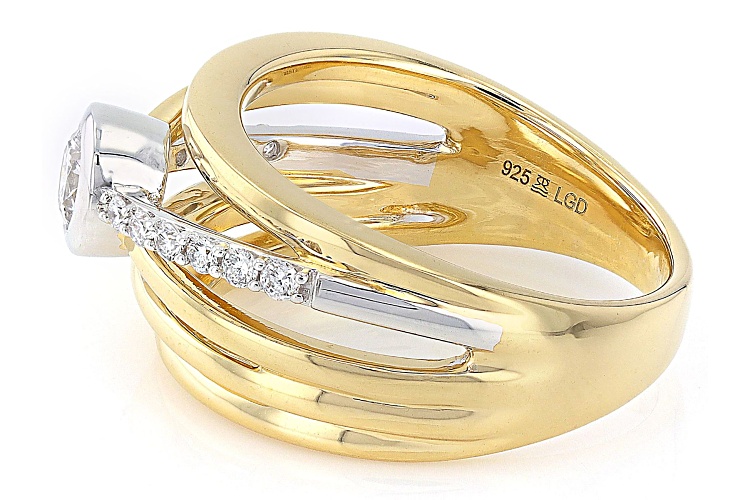 Prazana® Lab-Grown Diamonds 0.30ct round white lab-grown diamond center stone with 0.15ctw white round lab-grown diamond, rhodium and 14k yellow gold over sterling silver ring. Measures approximately 7/16"W. H color, SI clarity minimum.