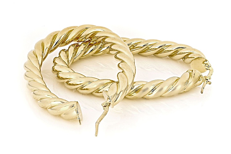 Moda Al Massimo® 18k Yellow Gold Over Bronze 2" Swirl Hoop Earrings. Made in Italy.
