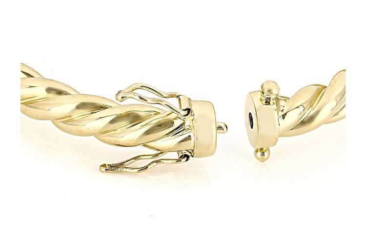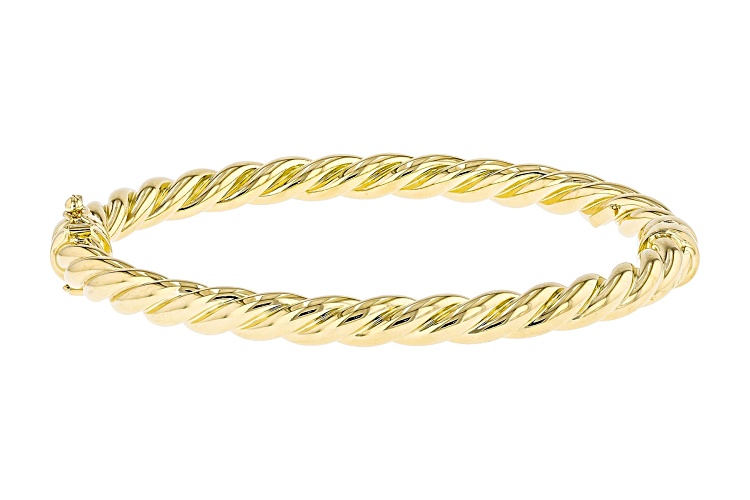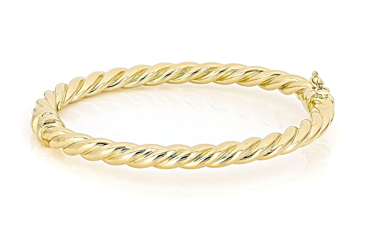 Moda Al Massimo® 18k Yellow Gold Over Bronze Twisted Bangle Bracelet. Made in Italy. Measures approximately 0.42"W with a box clasp with safety closure.