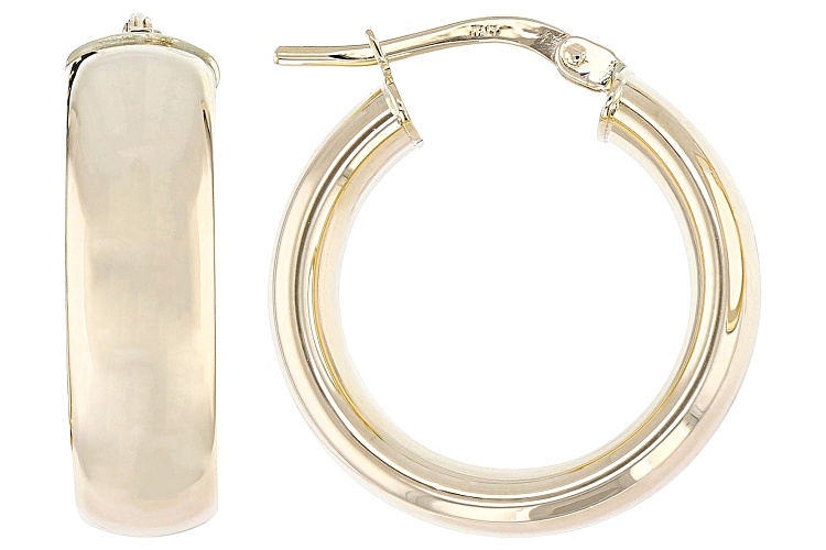 14k Yellow Gold 0.60" Satin Hoop Earrings. Measures Approximately 1/4"W. Saddle Backings.