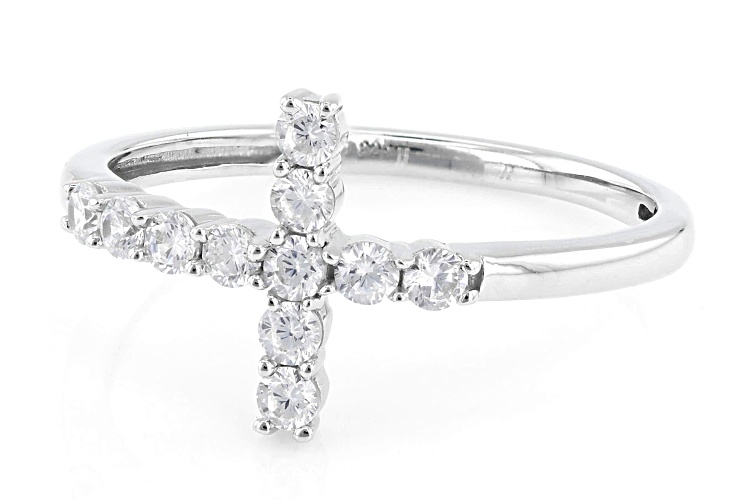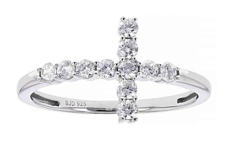 • Bella Luce® 0.50ctw White Diamond Simulant Rhodium Over Sterling Silver Cross Ring - Size 6