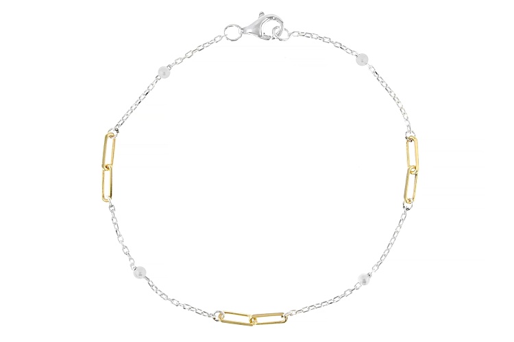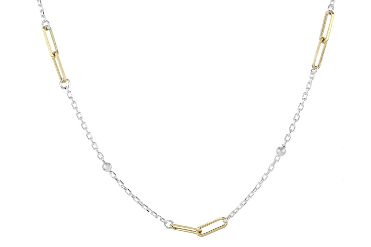 • 18k Gold Over Sterling Silver Two-Tone 3mm Paperclip/Bead Station 18