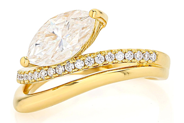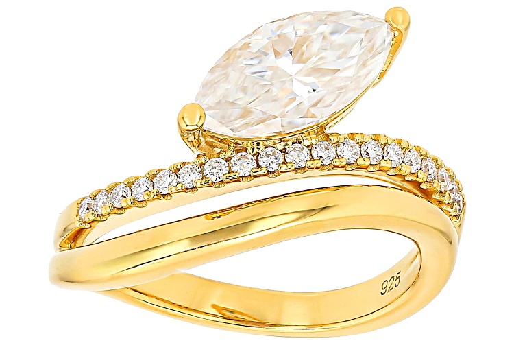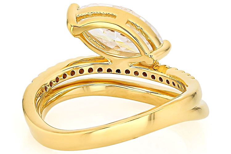 MOISSANITE FIRE® 2.19CTW DEW MARQUISE AND ROUND 14K YELLOW GOLD OVER SILVER RING - Size 5