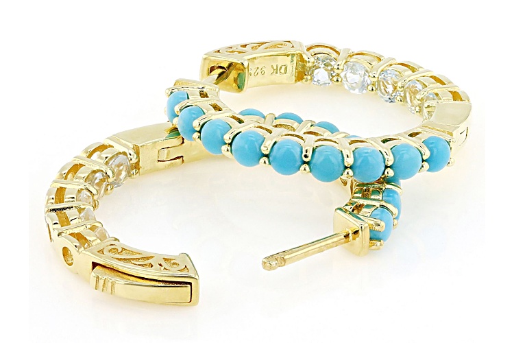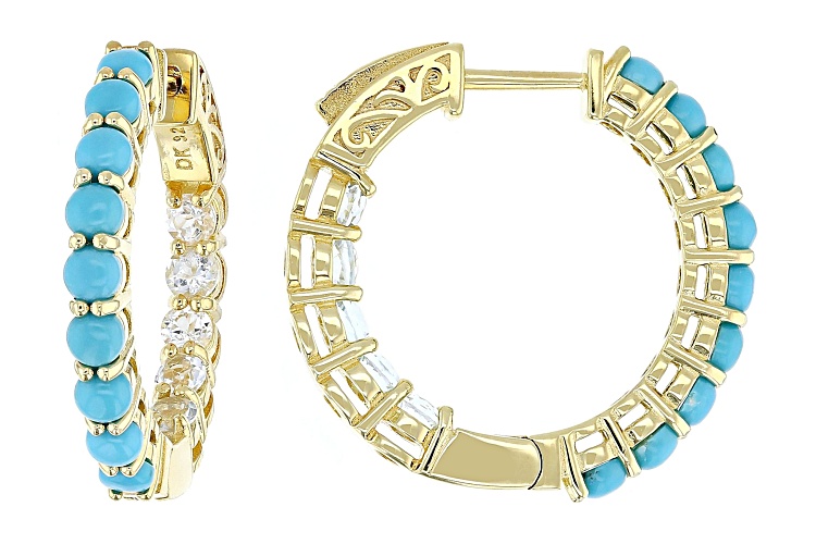 3mm Sleeping Beauty Turquoise With 1.19ctw Glacier Topaz™ 18k Yellow Gold Over Silver Earrings