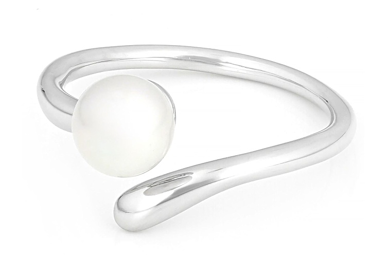6mm White Cultured Freshwater Pearl Sterling Silver Bypass Ring - Size 9