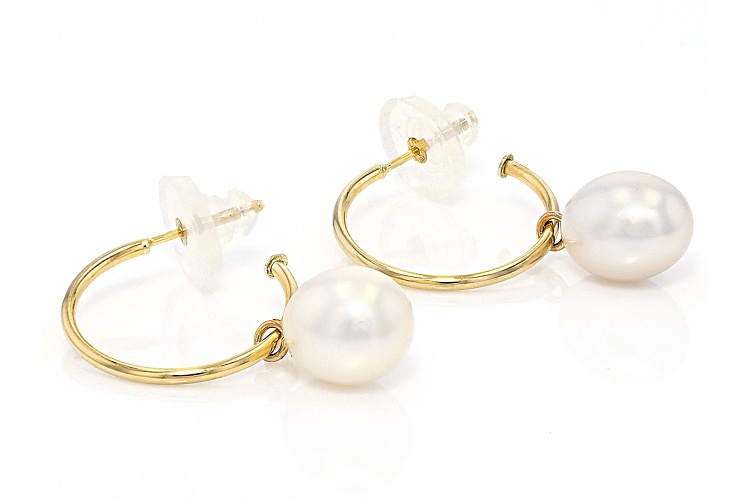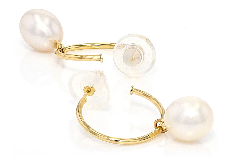 8mm White Cultured Freshwater Pearl 14k Yellow Gold Earrings. Measures approximately 1/2" L x 5/16" W and have bullet backings. Colors, shapes, and sizes may vary.