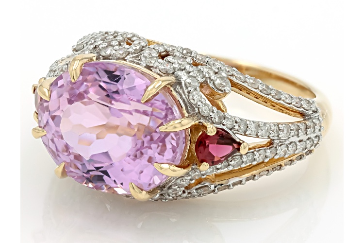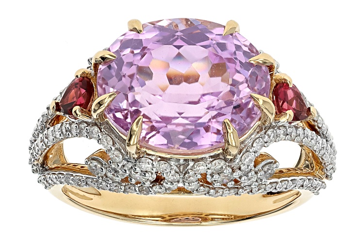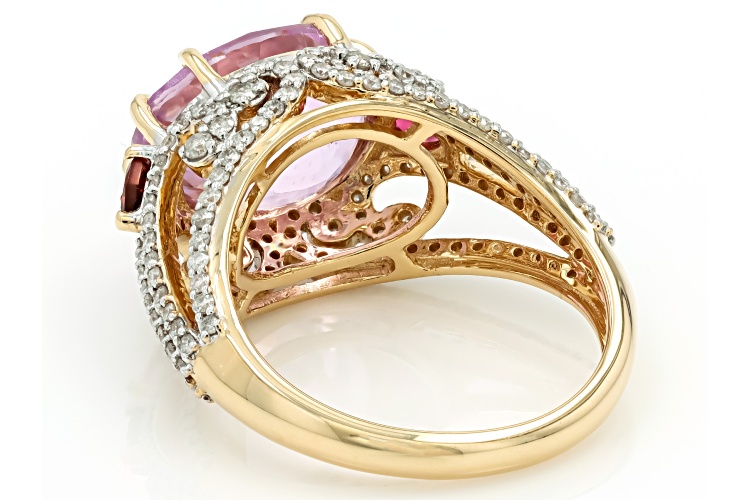 • Park Avenue Collection® Kunzite, Rubellite And White Diamond 14k Yellow Gold Ring 6.36ctw - Size 8